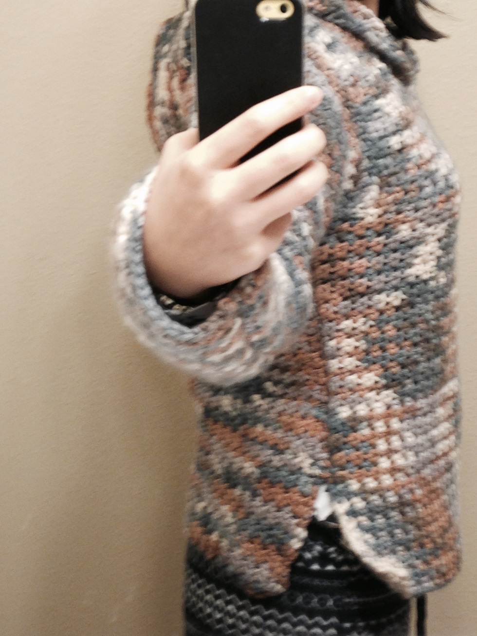 今ここ わーい! (&髪切りました。 一応これで終わってはいるんですが、オプションとして前ポケットつけようかなと悩んでます。多分毛糸足りるので…。 指定どおりにすると大きすぎるから調整したり、結局袖と肩辺りがやっぱりちょっと大きすぎたり、そのくせフードは小さかったかもしれない…みたいな、学ぶ点は多かったです。 とりあえず、これからかぎ針でセーター編もうかな~ とか考えてる人いましたら、私から言えるのは「すげー時間と根気かかった!!」です。模様はほぼ同じものの繰り返しだからパーツ一個終わるまでは達成感もなく。やっぱ大きいものは棒針のほうが楽ですね。でもかぎ針のほうが変幻自在なのでこういうパーツの多いものはどうしてもカギの方が気が楽です。 あ~~ 仕事やること多すぎる (現実逃避 |