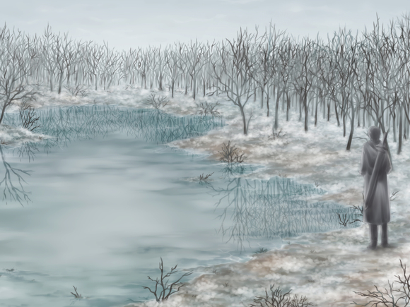 40冒頭、ティナ目線からの凍った沼地と怪しい男(笑)。