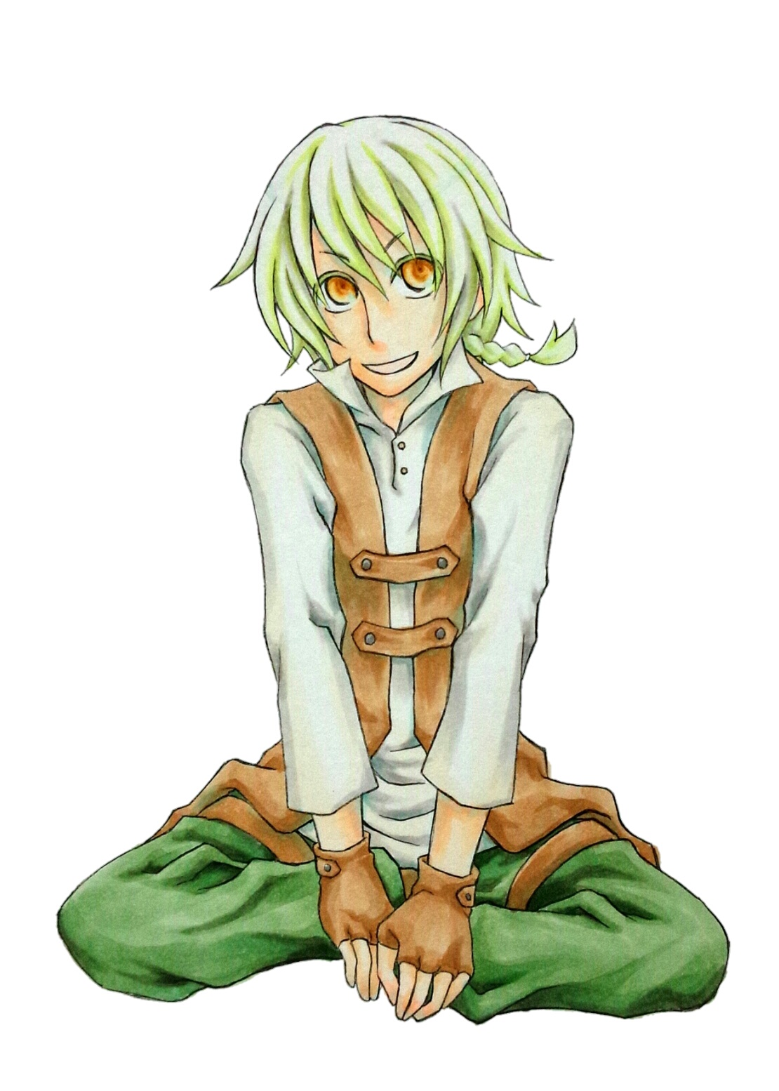 肌色どれくらい暗くしようか…と悩んでいたら、えびから貰ってた絵を参考に。服の色が青と緑ベースなのは、流石にオール漆黒だと塗っていて空しくなるからw