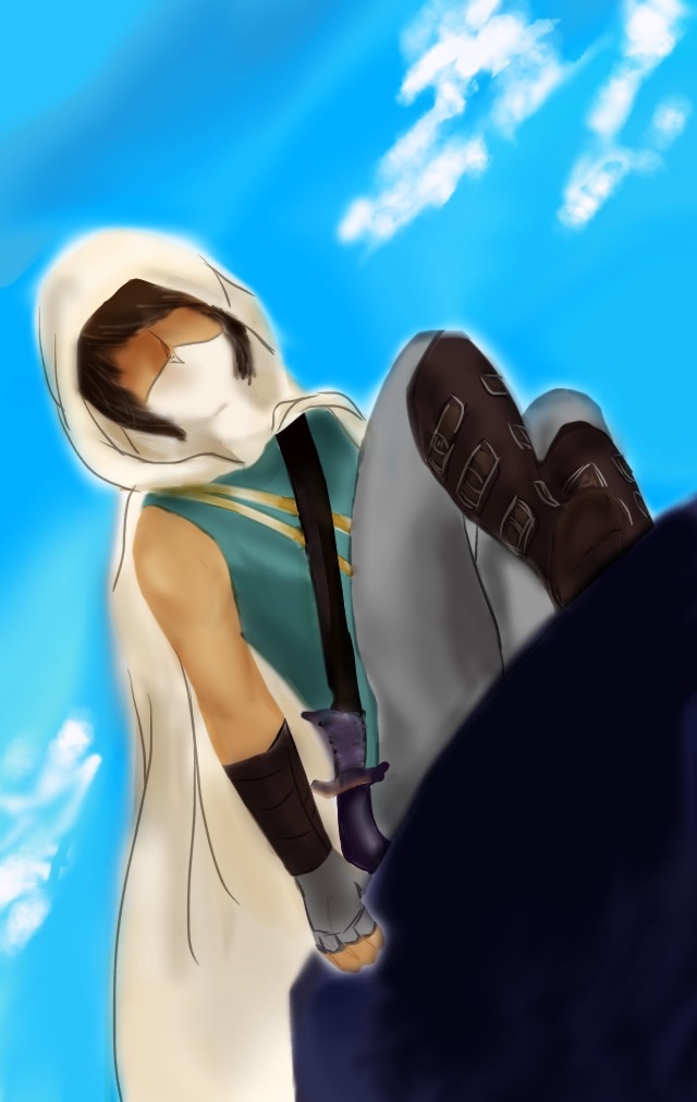 それはさておき、下は先週私がせっせと描いてた挿絵っぽいような一枚絵的なアレです。背景が空なのは、崖と檻に挑む気力が無かったからです。線はシャーペンで、色はスマホアプリで手がけてます。