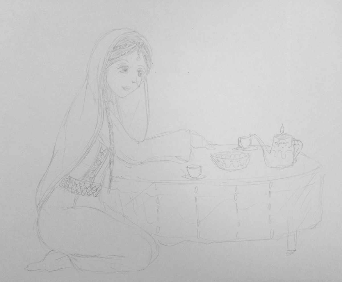 布や小物のなんと丁寧なことか。あと髪の描き方の形? いいですね。私もこういうの描けるようになりたいですー。