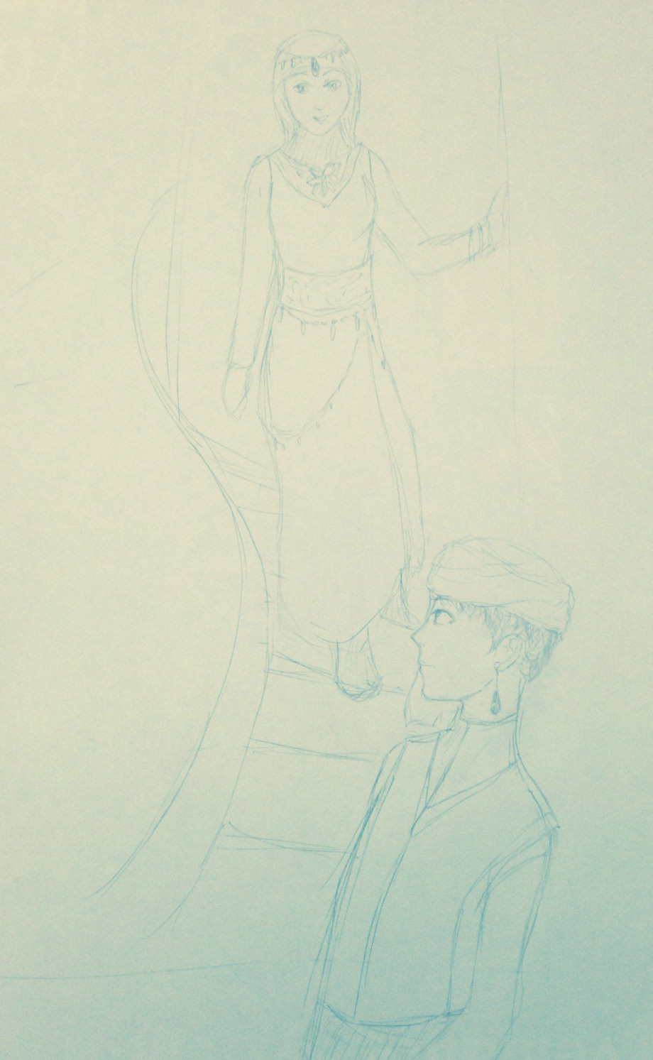次は、今練ってる話の二人。やはり描いてみないとわからないことってありますね。男性の方は想像よりひょろく描いてしまいましたが、イメージの中のロン毛が払拭されてすっきりとした髪になりました。顎にちょっと髭生やしてるのは遊び心(?)です。