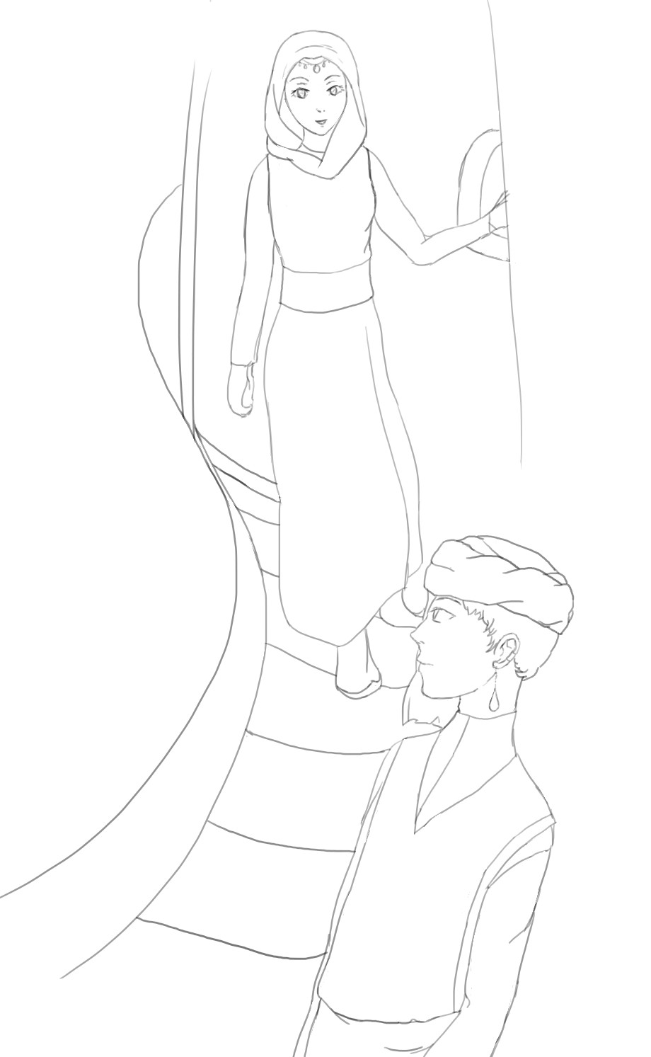 これは内容的に三章の表紙ですかね。そのうち他の章の表紙案も考えようかな…二章はアズリとイトゥ=エンキとか? 四章はカイル(とティナ)? 五章はもちろん、ゲズゥとミスリアの割といちゃいちゃしてる構図ですよね? (ハードル高)